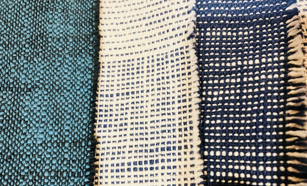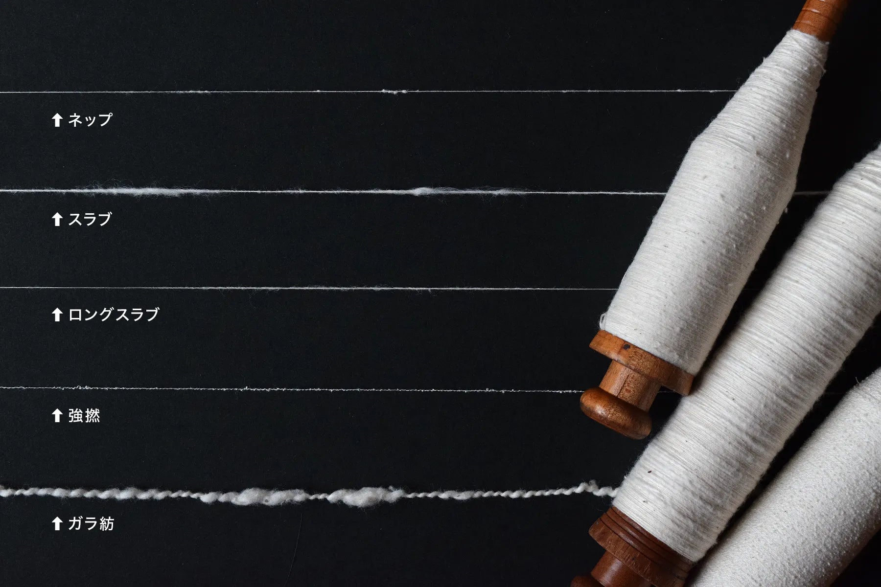 遠州木綿といっても使用する糸の種類で表情も様々。こちらの講座でモモンガコートの材料として準備しておりますのは「スラブ」。スラブとは糸の名前の一つで、節の長さの異なる糸を不規則な間隔で撚ったもの。なだらかに糸の太さが変わり、独特の風合いが楽しめご自宅でお洗濯OK!水を通すごとにふんわり柔らかに育っていきます
