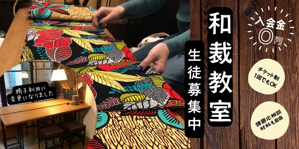 当店の和裁教室は少人数制、日時指定の予約制となっておりますが『とりあえず予約』は極力避けていただけましたら幸いです。頻繁に直前キャンセルが続く場合は事前予約をご遠慮いただき、当日空席があるレッスンのみご参加いただく形でお願いする場合がございます。月謝制ではなく、できるだけ多くの方にご都合に合わせてご参加いただける教室を維持するために、ご理解とご協力をお願いいたします。